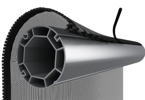 - Contoured bottom bar, designed to retract into the hood assembly, accommodates a weighted steel bar insert which assists in keeping the screen taut and operating smoothly.